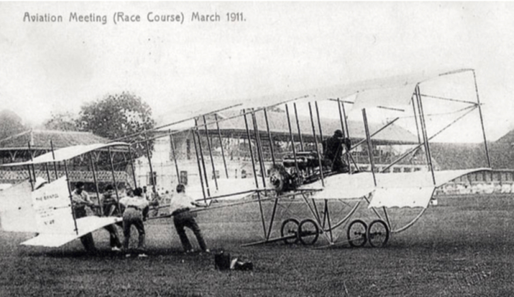 在莱特兄弟于 1903 年在北卡罗来纳州驾驶小鹰号完成首次动力飞行后不到 8 年,新加坡的首次动力飞行于 1911 年 3 月 16 日在 Farrer Park 赛马场举行。